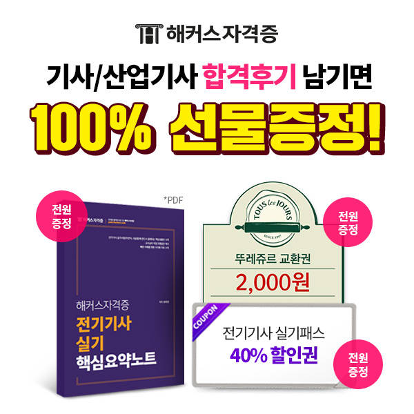 [에너지경제신문 박성준 기자] 제3회차 전기기사 필기시험이 종료된 가운데, 제4회차 필기시험일이 오는 26일(토) 진행될 예정이다. 이에, 전기기사∙전기산업기사∙전기공사기사 인강으로 많은 추천을 받는 해커스자격증이 전기(산업)기사 합격생을 대상으로 다양한 혜택을 제공하는 ‘합격 후기 이벤트’를 진행해 화제다.