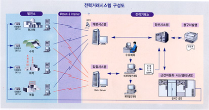 전력거래시스템은 입찰, 발전계획, 정산, 요금청구, 계량시스템으로 구성돼 있다.
